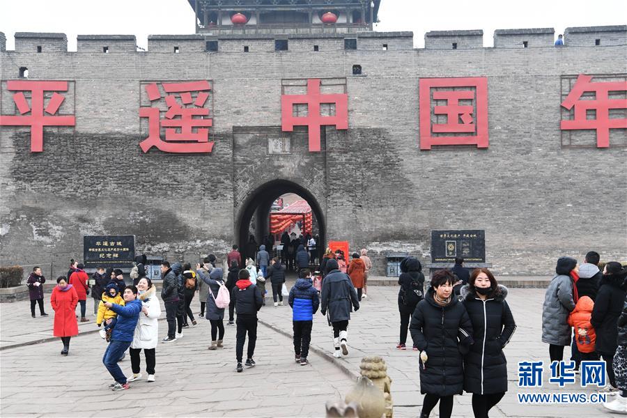 (2019年)2月13日,游客在平遙古城參觀。新華社記者楊晨光攝