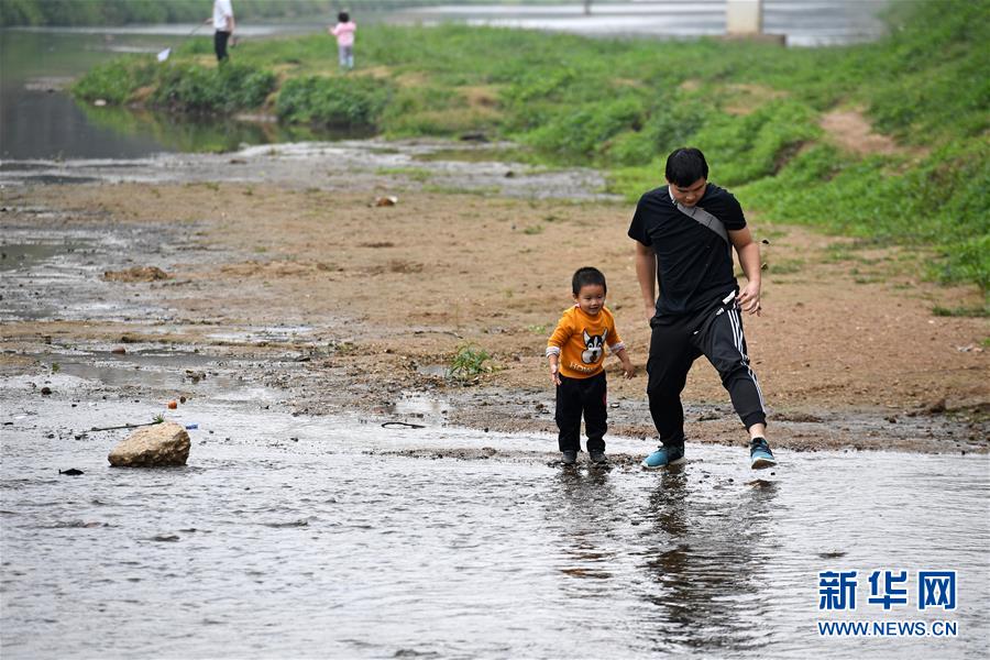 2019年12月22日,家長帶著孩子在深圳龍崗河上玩耍。 新華社記者 梁旭 攝