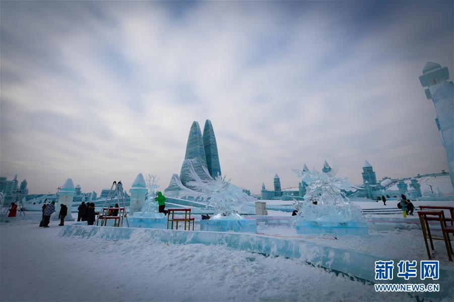 冰雕師在哈爾濱冰雪大世界內(nèi)雕刻出主題各異的冰雕作品(1月8日攝)。新華社記者王松攝