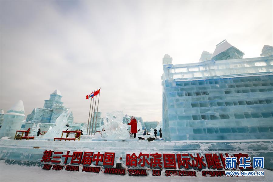 1月7日,參賽者在進(jìn)行冰雕創(chuàng)作。當(dāng)日,在哈爾濱冰雪大世界園區(qū)舉行的第三十四屆中國(guó)哈爾濱國(guó)際冰雕比賽進(jìn)入第二天,參賽的冰雕作品已芳容初現(xiàn)。新華社記者王松攝