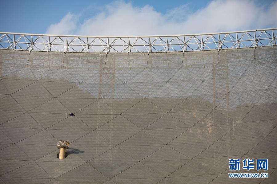 8月28日,工作人員在對FAST反射面板進行檢修。新華社記者歐東衢攝