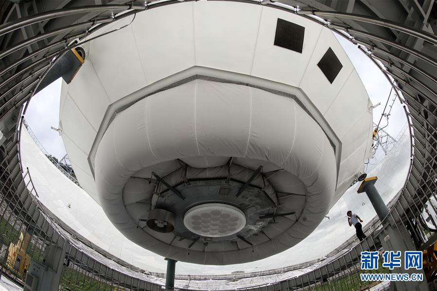 8月28日,工作人員在引導(dǎo)FAST饋源艙下降以進行檢修。新華社記者歐東衢攝