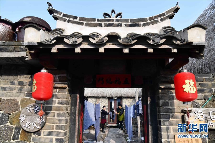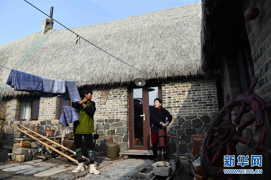 在榮成市煙墩角村,于海洋和母親趙錦蘭在打理海草民宿(1月12日攝)。新華社記者 郭緒雷 攝