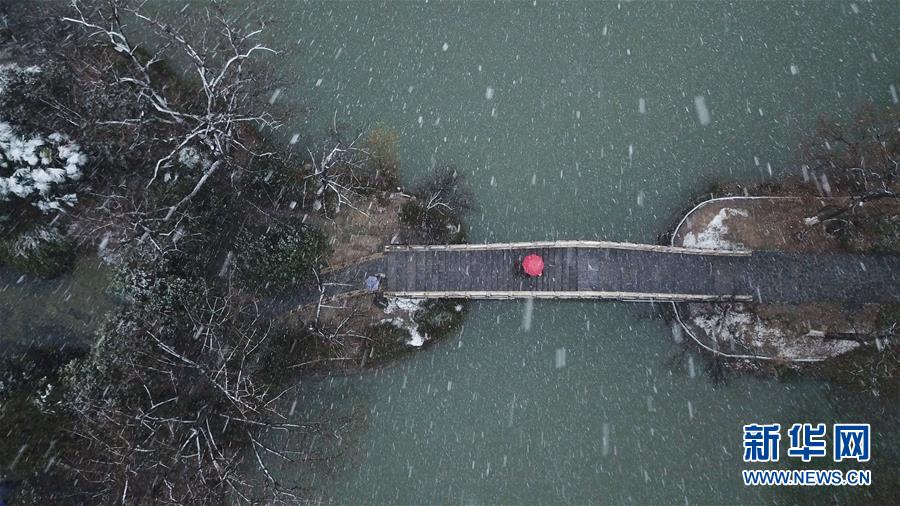 這是1月15日拍攝的合肥市包公園雪景(無人機(jī)照片)。 當(dāng)日,安徽省合肥市迎來降雪天氣。雪中的合肥市包公園景色別致。 新華社記者 張端 攝