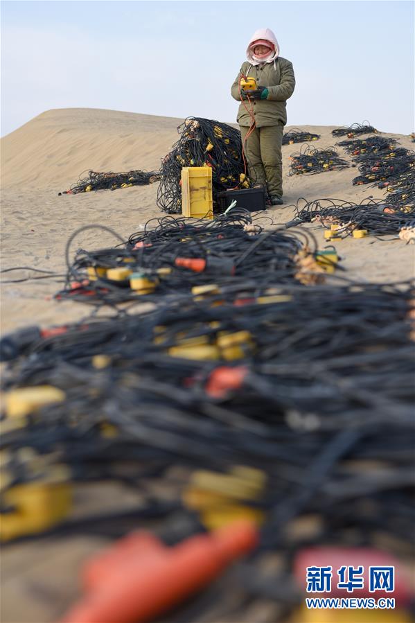 查線工王輪在檢測待用的檢波器(1月14日攝)。 新華社記者 丁磊 攝