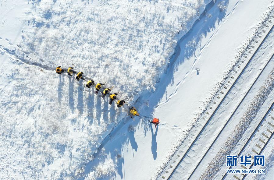 1月13日,白音庫倫綜合維修車間的職工來到作業(yè)點準備工作(無人機照片)。新華社記者劉磊攝