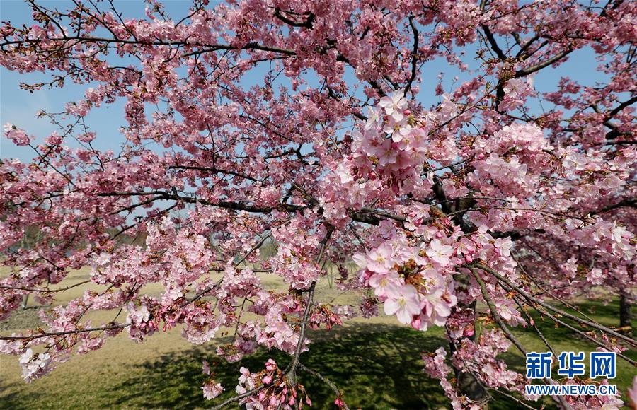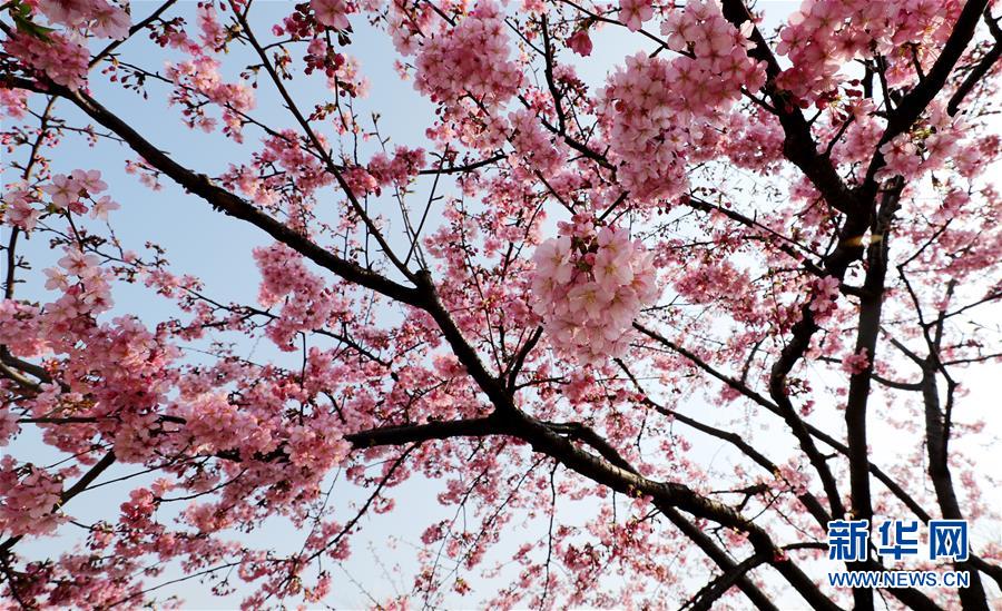 2月24日,蜜蜂在上海松江辰山植物園內(nèi)盛開的河津櫻櫻花叢中飛舞。近日,上海松江區(qū)辰山植物園內(nèi)的河津櫻絢麗綻放,花團(tuán)錦簇間一派盎然春意。 新華社記者 方喆 攝