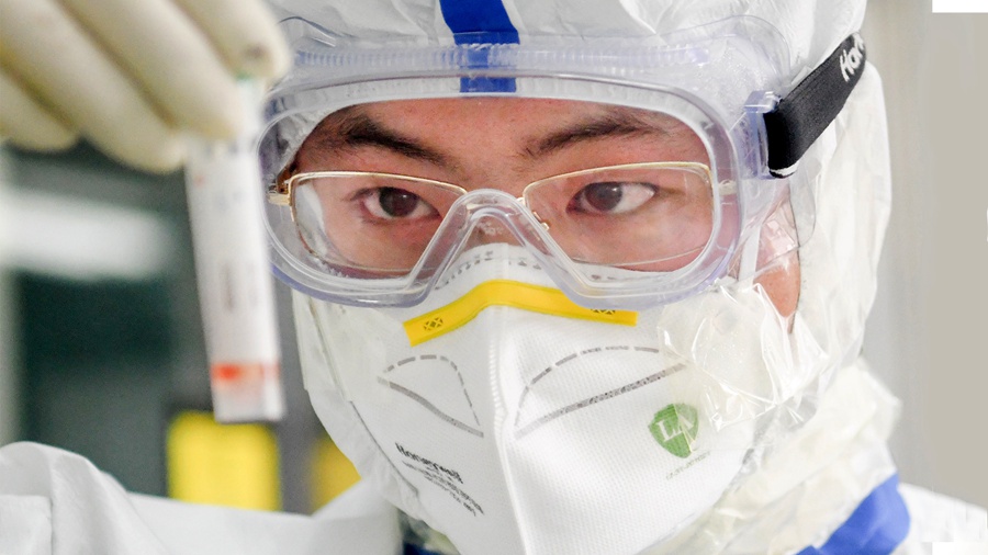 他正在進(jìn)行新型冠狀病毒核酸檢測(cè)