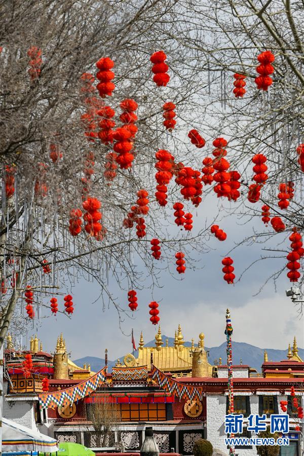 大昭寺外掛起紅燈籠(2月24日攝)。新華社記者普布扎西攝