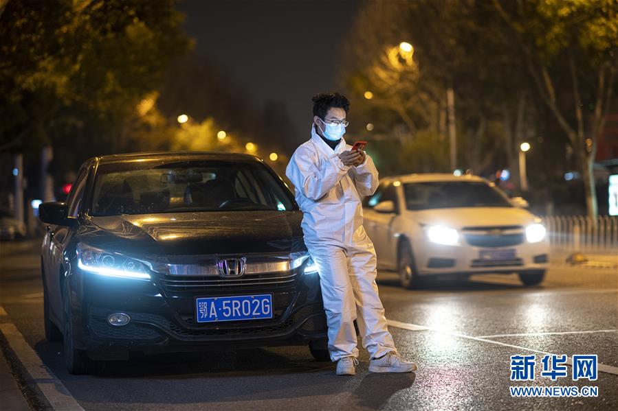 2月21日,王永朋在路邊等待,準(zhǔn)備接單。這個春節(jié)王永朋沒回老家甘肅安陽,他報(bào)名擔(dān)任高德醫(yī)護(hù)專車志愿者,開著年前剛買的新車,免費(fèi)接送醫(yī)護(hù)人員上下班。因?yàn)樽≡谖錆h新洲區(qū),距離江漢、武昌等老城區(qū)有相當(dāng)一段車程,他每天早上6點(diǎn)就起床出車,晚上十一二點(diǎn)才能回家休息,一天接送幾十位醫(yī)護(hù)人員上下班。每次到達(dá)目的地,醫(yī)生和護(hù)士下車后做的第一件事,總是向他致謝,還有不少人硬要塞錢給他,穿著防護(hù)衣、戴著口罩和護(hù)目鏡的王永朋,每次都微笑著退回了。新華社記者熊琦攝