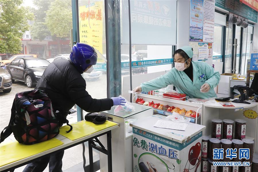 2月22日,王春波將藥品遞給前來買藥的外賣騎手。王春波是武昌天濟(jì)大藥房錦繡江南店的一名店員,在武漢下達(dá)“所有小區(qū)全面實(shí)施封閉管理”的禁令之后,很多居民買藥成了麻煩事,尤其是獨(dú)居的老年人。她知道后,主動(dòng)聯(lián)系物業(yè)告知大家,如果有需要,她可以上門送藥?,F(xiàn)在,她和同事每天要派送100多單藥品,大部分都是“三高人群”服用的藥。很多顧客很感激王春波,“幸虧你們一直開業(yè),東西也齊全,一分錢都沒漲!”王春波說:“關(guān)鍵時(shí)期,大家都是在相互幫忙,這就是很平常、很普通的一件事?!毙氯A社記者熊琦攝