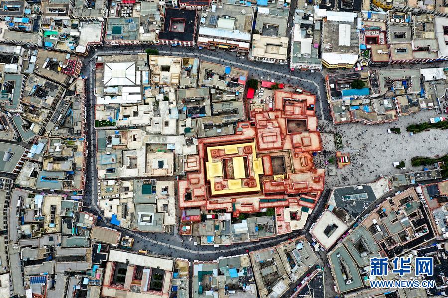 8月10日無(wú)人機(jī)拍攝的大昭寺。新華社記者普布扎西攝