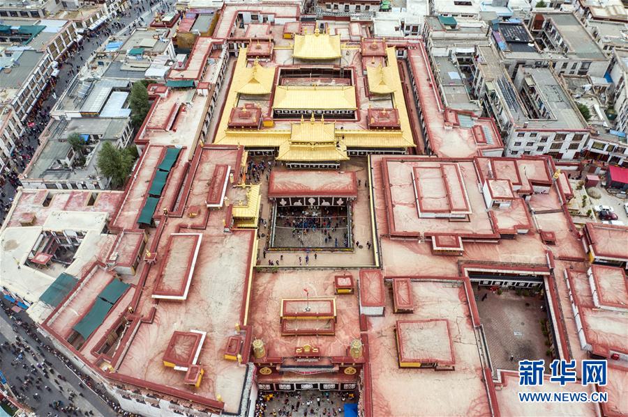 8月10日無(wú)人機(jī)拍攝的大昭寺。新華社記者李鑫攝