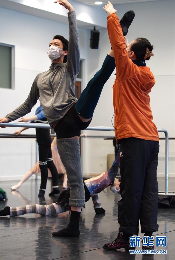 2月29日,在通過網(wǎng)絡(luò)直播的“公益公開課”上,上海芭蕾舞團(tuán)團(tuán)長(zhǎng)辛麗麗(右)在指導(dǎo)首席演員吳虎生。新華社記者任瓏攝