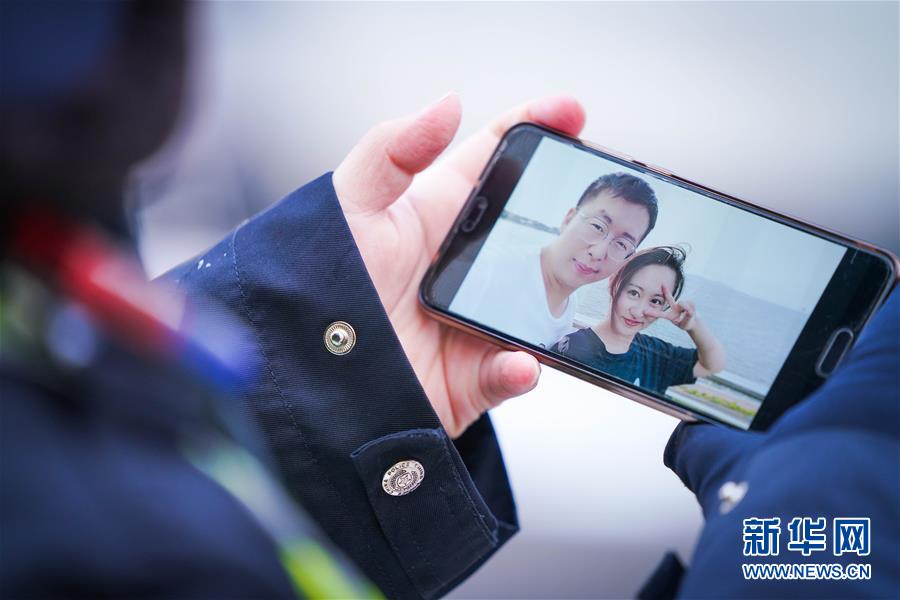 李可心展示手機里父親李論的工作照(3月1日攝)。父親李論是一名民警,負責對轄區(qū)內(nèi)疑似感染人員居住小區(qū)進行封控、排查工作。新華社記者王松攝