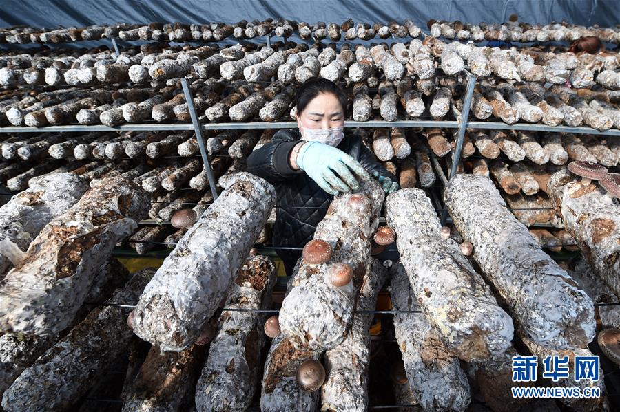 3月4日,在靖遠(yuǎn)縣石門鄉(xiāng)路莊村易地扶貧搬遷搬入地——三灘鎮(zhèn)銀灘村,農(nóng)民在香菇大棚里采摘香菇。