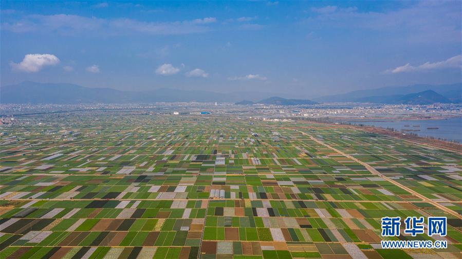 時下正值農(nóng)忙時節(jié),云南省玉溪市通海縣的農(nóng)作物長勢喜人,山巒、湖水與農(nóng)田組成了一幅美麗的田園詩畫卷。