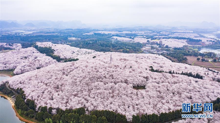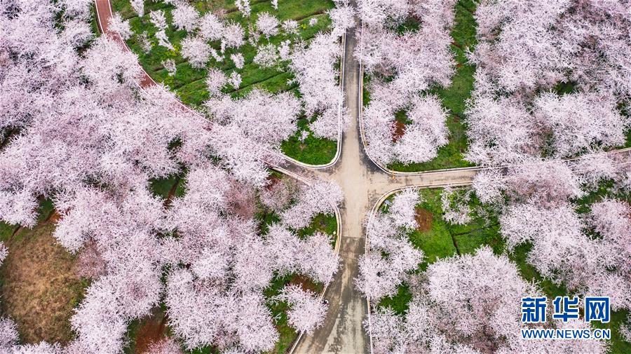 3月12日拍攝的貴安新區(qū)櫻花觀(guān)光園風(fēng)景(無(wú)人機(jī)照片)。 近日,貴州省貴安新區(qū)櫻花觀(guān)光園內(nèi)櫻花競(jìng)相盛開(kāi),花團(tuán)錦簇間春意盎然。據(jù)介紹,疫情防控期間,為避免人群聚集,櫻花園暫不接待游客。 新華社記者 陶亮 攝