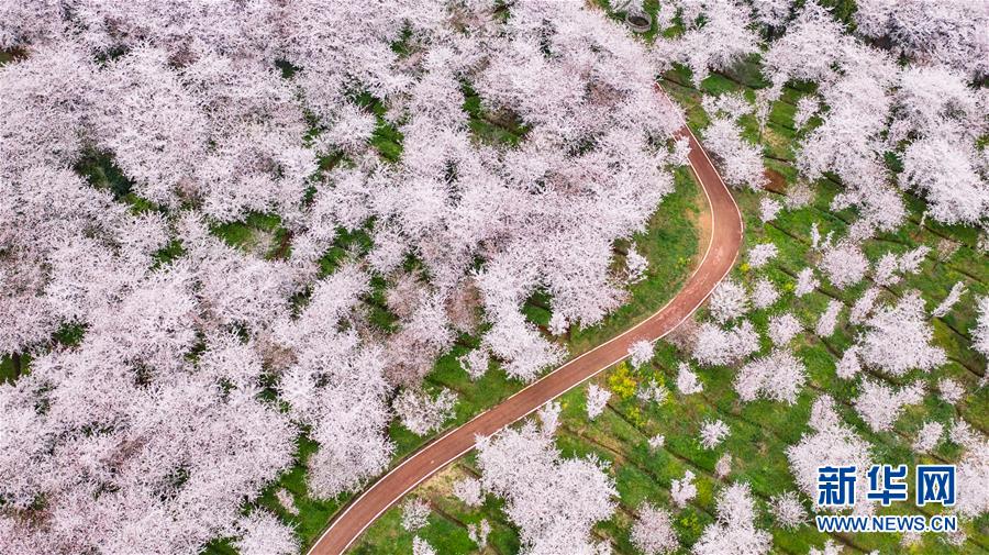 3月12日拍攝的貴安新區(qū)櫻花觀光園風(fēng)景(無人機(jī)照片)。 近日,貴州省貴安新區(qū)櫻花觀光園內(nèi)櫻花競相盛開,花團(tuán)錦簇間春意盎然。據(jù)介紹,疫情防控期間,為避免人群聚集,櫻花園暫不接待游客。 新華社記者 陶亮 攝