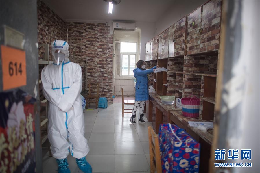 3月12日,黎婧在收拾行李準(zhǔn)備出發(fā),志愿者在門旁等候。 3月12日,插畫師黎婧和84位病友離開自己居住的武漢軟件工程職業(yè)學(xué)院康復(fù)驛站,回到自己家中。他們都是治愈出院的新冠病毒肺炎患者,已經(jīng)在武漢軟件工程職業(yè)學(xué)院康復(fù)驛站進(jìn)行了14天醫(yī)學(xué)觀察,達(dá)到醫(yī)學(xué)標(biāo)準(zhǔn),成功解除隔離。他們由專車運(yùn)送至所屬社區(qū)附近的集散點(diǎn)后,在社區(qū)工作人員的陪同下回家。 新華社記者 肖藝九 攝