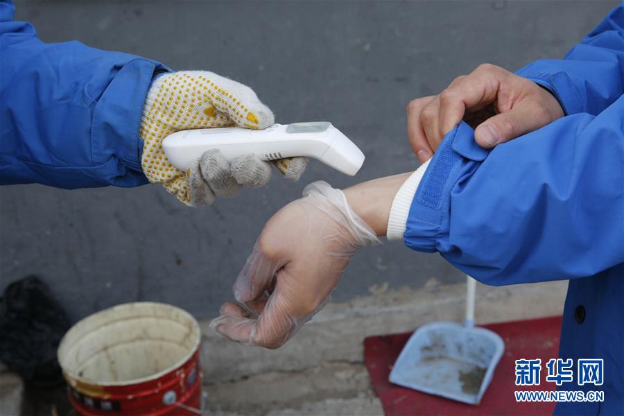 3月12日,李杰在中通快遞北京廠洼路網點上崗前檢測體溫。新華社記者張玉薇攝