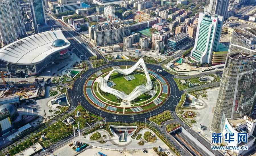 這是3月15日拍攝的武漢光谷廣場(chǎng)(無(wú)人機(jī)照片)。 3月15日,江城武漢天氣晴好,整個(gè)城市沐浴在和煦的春光中。 新華社記者 李賀 攝