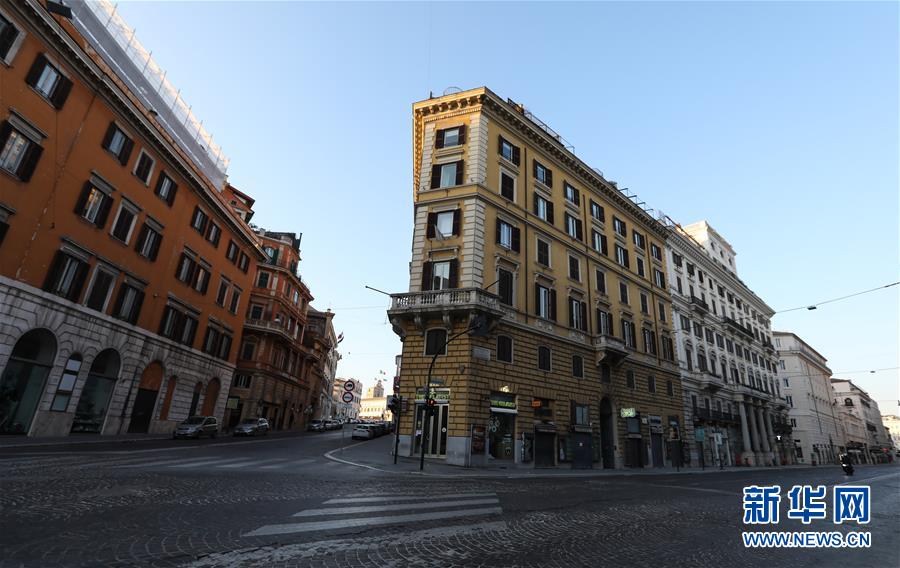 3月15日,在意大利首都羅馬,街頭空無一人。新華社記者程婷婷攝