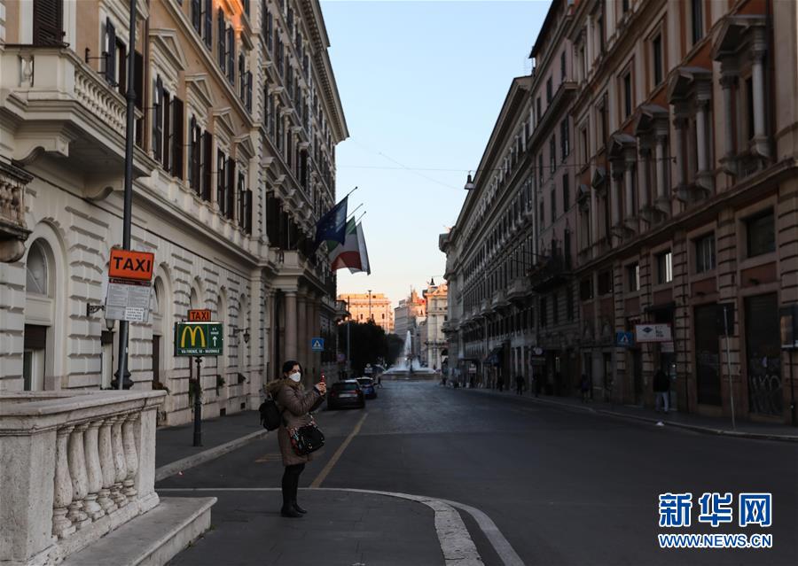 3月16日,在意大利首都羅馬,威尼斯廣場(chǎng)前行人寥寥。新華社記者程婷婷攝