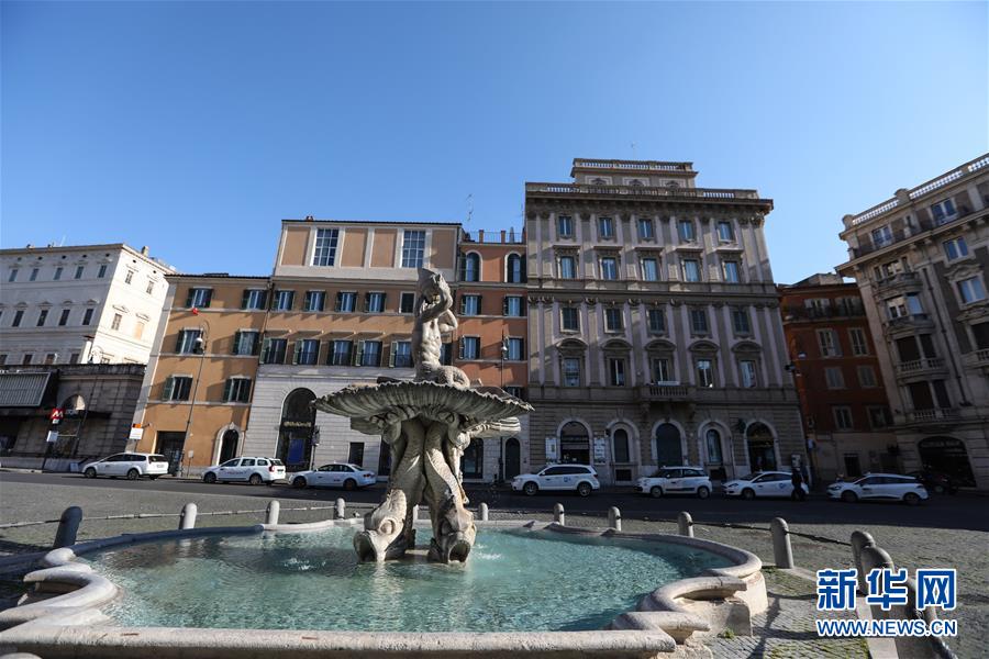 3月16日,在意大利首都羅馬,巴貝里尼廣場(chǎng)空曠無游人。新華社記者程婷婷攝