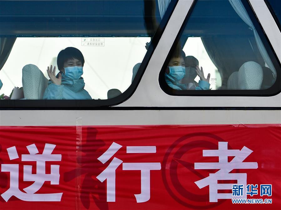 3月17日,醫(yī)療隊隊員在青海西寧曹家堡國際機(jī)場向前來接機(jī)的人們揮手致意。隨著湖北新冠肺炎疫情形勢好轉(zhuǎn),當(dāng)日,援鄂醫(yī)療隊開始有序撤回,陸續(xù)抵達(dá)各地。新華社記者張龍攝