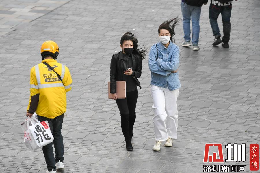 北京八九級(jí)大風(fēng)進(jìn)城,路人頭發(fā)被吹亂。