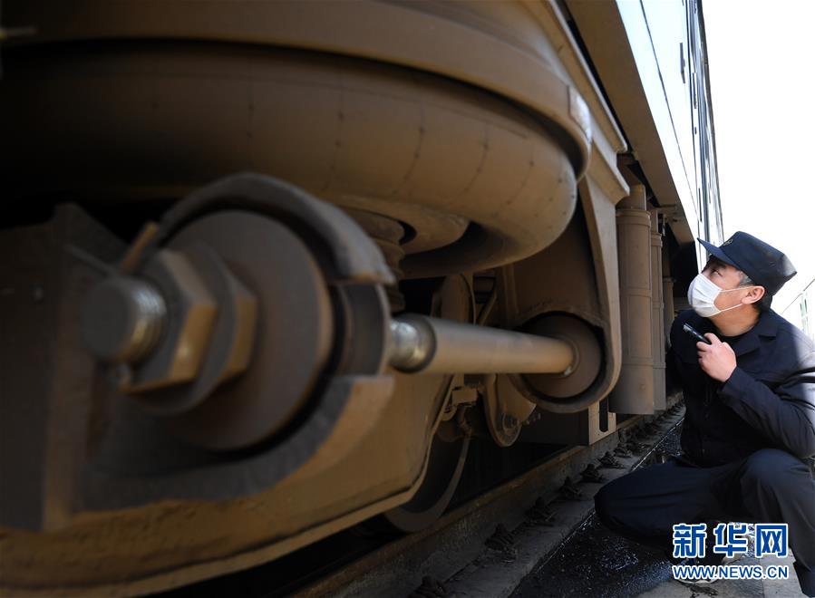 3月19日,鄭州車輛段庫檢車間值班主任張伯季在對客車下部設(shè)施進(jìn)行檢查。新華社記者 李安 攝