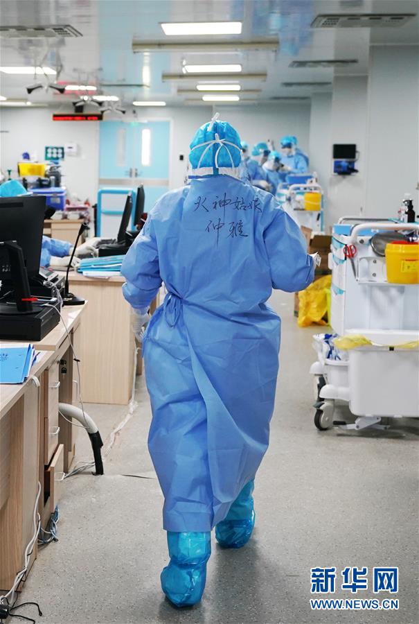 80后護士仲雅快步走向患者床旁準(zhǔn)備護理(3月20日攝)。 武漢火神山醫(yī)院重癥醫(yī)學(xué)一科的護理團隊共50名護士,其中絕大多數(shù)是80后、90后女性,她們不懼危險,奮戰(zhàn)在抗擊疫情的最前沿“紅區(qū)”。 新華社記者王毓國攝