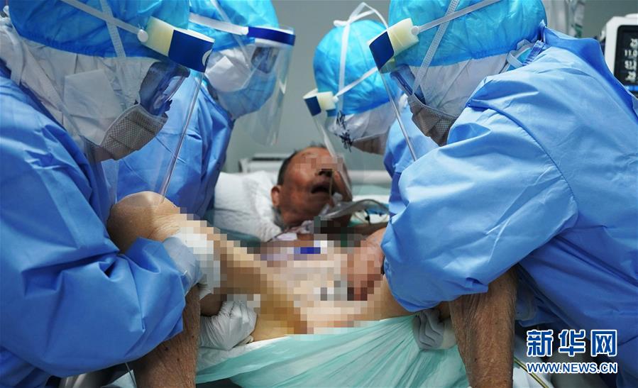 四名護(hù)士一起調(diào)整患者的身體姿態(tài)(3月20日攝)。 武漢火神山醫(yī)院重癥醫(yī)學(xué)一科的護(hù)理團(tuán)隊(duì)共50名護(hù)士,其中絕大多數(shù)是80后、90后女性,她們不懼危險(xiǎn),奮戰(zhàn)在抗擊疫情的最前沿“紅區(qū)”。 新華社記者王毓國(guó)攝