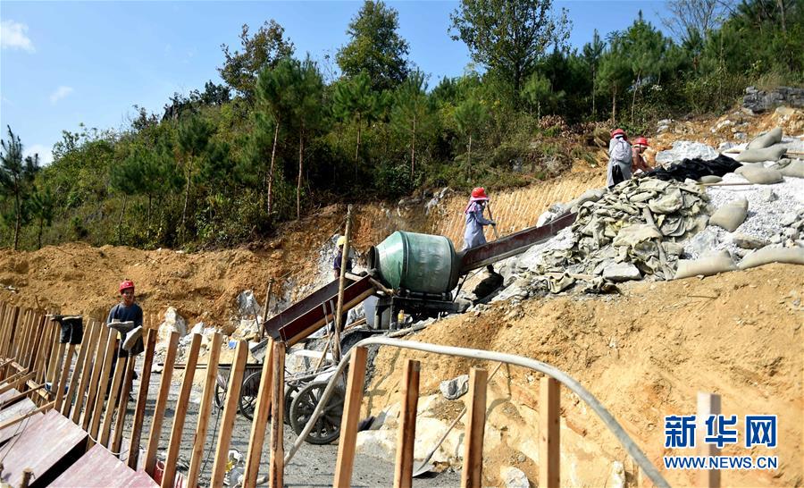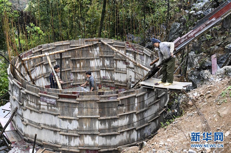 這是廣西大化瑤族自治縣七百弄鄉(xiāng)戈從村弄階屯群眾在修建水柜(2016年11月23日攝)。廣西有近一半貧困人口生活在石漠化地區(qū),涉及數(shù)十個(gè)縣區(qū)。這里也是廣西飲水保障程度最低的地區(qū),解決貧困人口飲水問題是廣西脫貧攻堅(jiān)戰(zhàn)“硬仗中的硬仗”?!笆濉币詠恚瑥V西加快實(shí)施農(nóng)村飲水安全鞏固提升工程。因地制宜,采取新建、擴(kuò)建及管網(wǎng)延伸等多種措施,補(bǔ)齊貧困地區(qū)水利薄弱短板,進(jìn)一步提升石漠化地區(qū)群眾飲水安全保障水平,助推脫貧攻堅(jiān)。新華社記者張愛林?jǐn)z