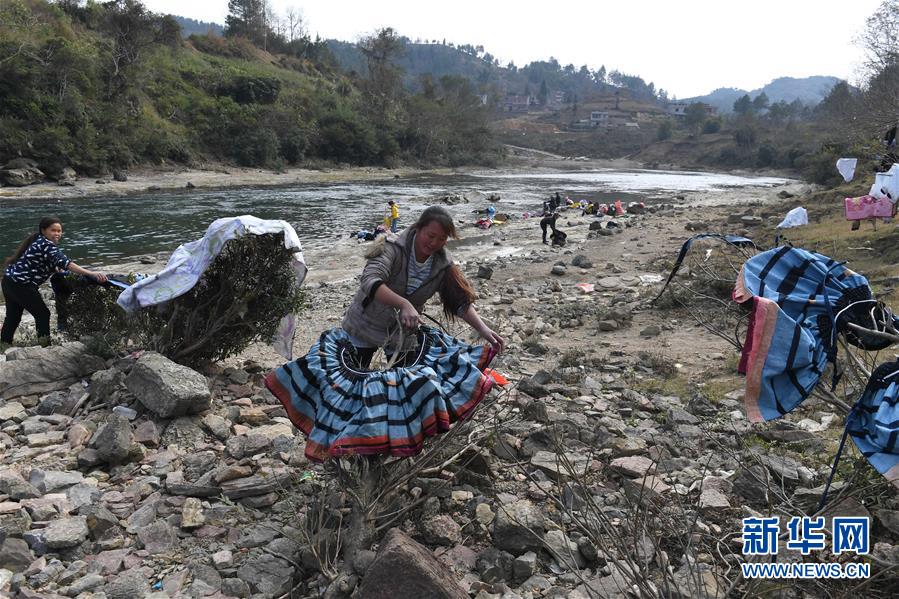 廣西南丹縣里湖瑤族鄉(xiāng),村民在河邊洗衣并就地晾曬(2018年1月12日攝)。廣西有近一半貧困人口生活在石漠化地區(qū),涉及數(shù)十個(gè)縣區(qū)。這里也是廣西飲水保障程度最低的地區(qū),解決貧困人口飲水問題是廣西脫貧攻堅(jiān)戰(zhàn)“硬仗中的硬仗”?!笆濉币詠?,廣西加快實(shí)施農(nóng)村飲水安全鞏固提升工程。因地制宜,采取新建、擴(kuò)建及管網(wǎng)延伸等多種措施,補(bǔ)齊貧困地區(qū)水利薄弱短板,進(jìn)一步提升石漠化地區(qū)群眾飲水安全保障水平,助推脫貧攻堅(jiān)。新華社記者周華攝