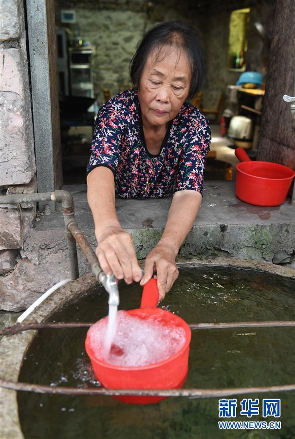 在廣西都安瑤族自治縣龍灣鄉(xiāng)琴棋村琴嶺屯,村民在接從水柜里引來的自來水(2019年7月23日攝)。廣西有近一半貧困人口生活在石漠化地區(qū),涉及數(shù)十個(gè)縣區(qū)。這里也是廣西飲水保障程度最低的地區(qū),解決貧困人口飲水問題是廣西脫貧攻堅(jiān)戰(zhàn)“硬仗中的硬仗”?!笆濉币詠恚瑥V西加快實(shí)施農(nóng)村飲水安全鞏固提升工程。因地制宜,采取新建、擴(kuò)建及管網(wǎng)延伸等多種措施,補(bǔ)齊貧困地區(qū)水利薄弱短板,進(jìn)一步提升石漠化地區(qū)群眾飲水安全保障水平,助推脫貧攻堅(jiān)。新華社記者陸波岸攝