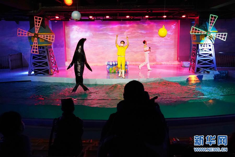 3月23日,游客在哈爾濱極地館觀看海獅表演。當日,哈爾濱極地館恢復營業(yè)。目前,極地館日接待人數(shù)不超過400人,園區(qū)采取分時段、間隔性辦法安排游客有序入園。游客實名預訂門票,入園要配合測溫、佩戴口罩、掃描“龍江健康碼”,刷身份證入館。新華社記者王建威攝