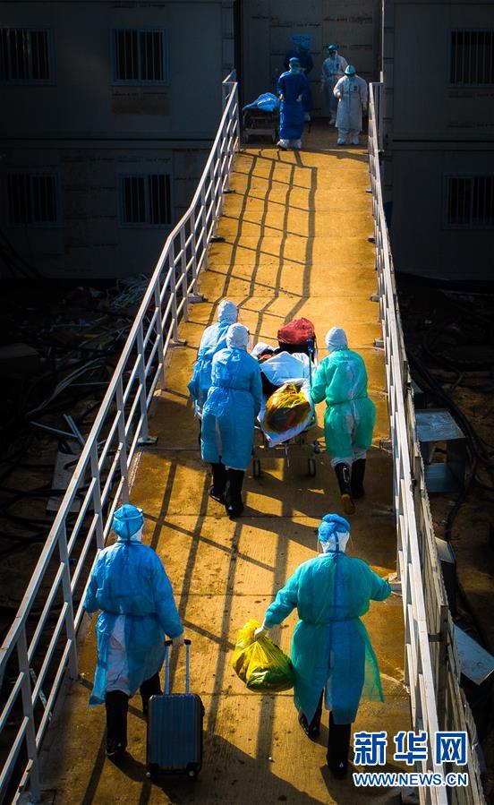 醫(yī)護人員將患者轉(zhuǎn)運至武漢火神山醫(yī)院病房(2月4日攝)。新華社記者肖藝九攝