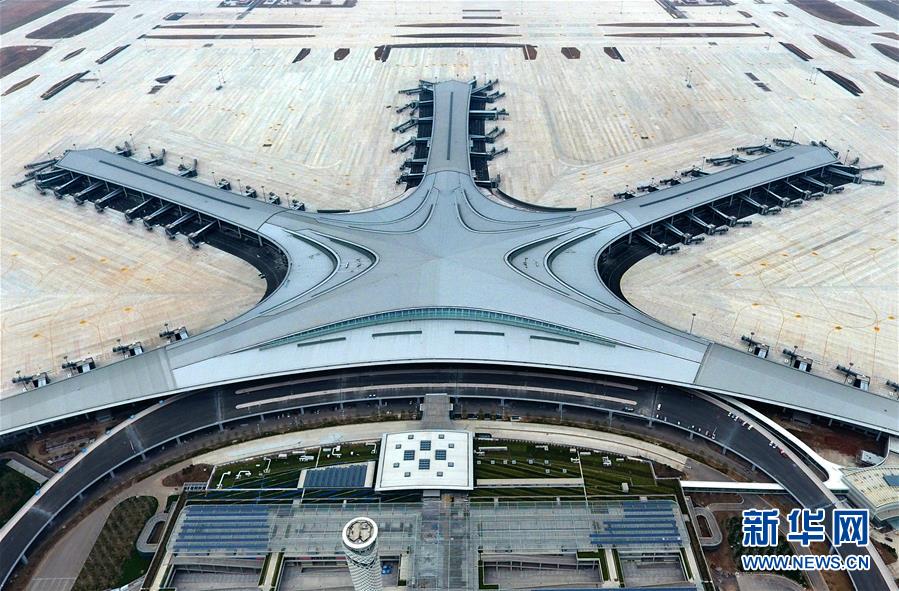 2019年6月12日無人機拍攝的建設(shè)中的青島膠東國際機場。新華社記者李紫恒攝