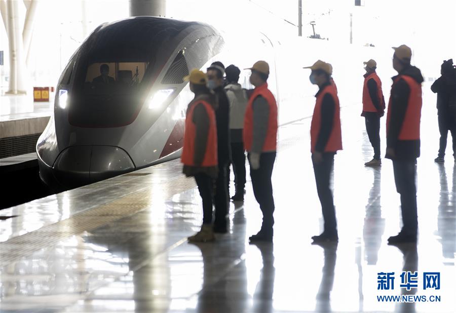 3月28日,工作人員迎來(lái)徐徐進(jìn)站的G1112次列車(chē)。新華社記者費(fèi)茂華攝
