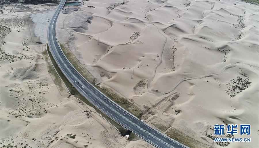 汽車在第一條沙漠公路上行駛(6月12日攝)。新華社記者趙戈攝