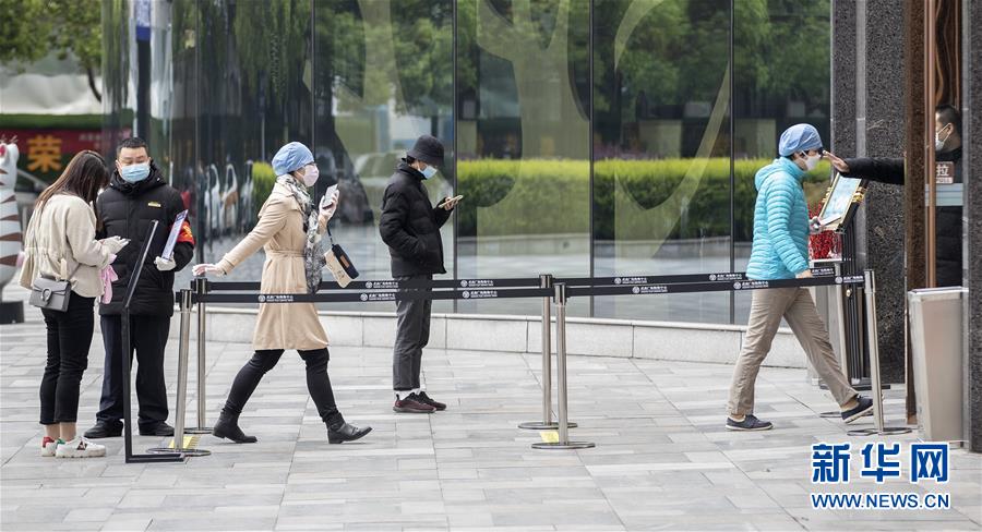 3月30日,顧客排隊進入武商國際廣場。當(dāng)日,武漢市多家商場開門迎客。新華社記者費茂華攝
