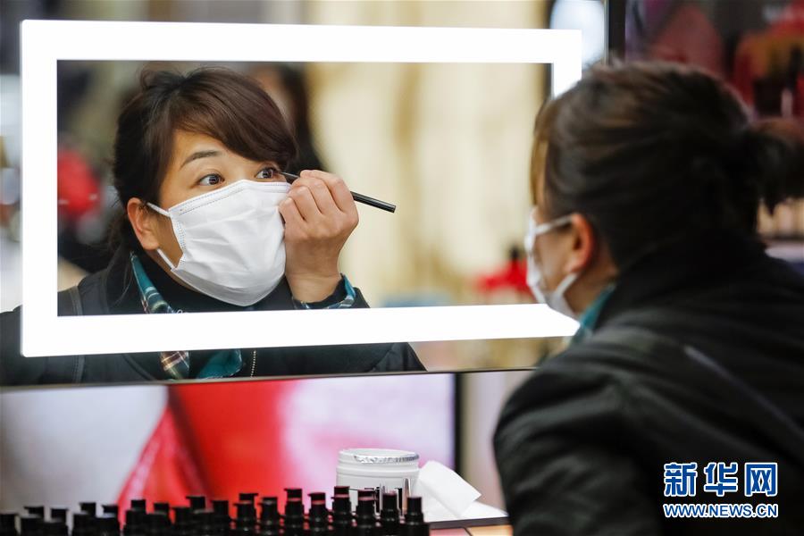 3月30日,在武漢市武商廣場,消費者在試用眉筆。當(dāng)日,武漢市多家商場開門迎客。新華社記者沈伯韓攝