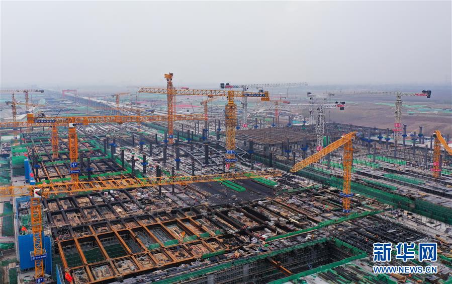 京雄城際鐵路雄安站總建筑面積47萬平方米,地上3層,地下2層,其中地下主體結(jié)構(gòu)將于近期完成,即將轉(zhuǎn)入地上主體結(jié)構(gòu)施工。新華社記者邢廣利攝