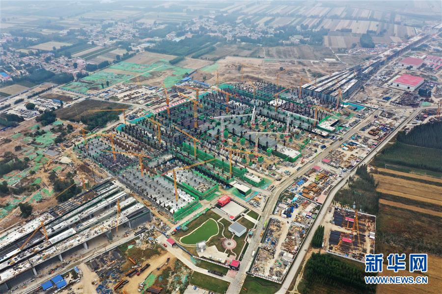 建設(shè)中的雄安站(10月10日無人機拍攝)。