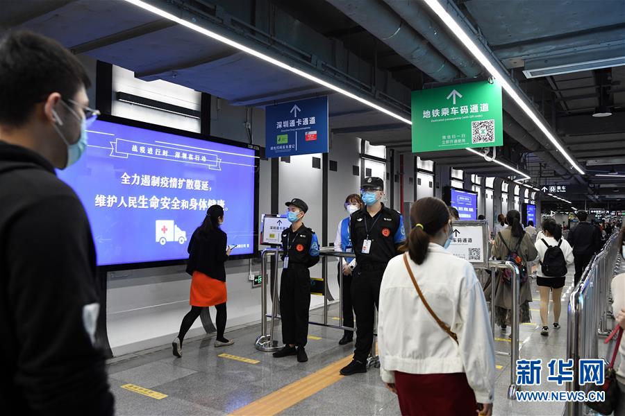 3月18日晚高峰時段,在深圳地鐵車公廟站,乘客掃描二維碼進(jìn)行實(shí)名登記。新華社記者梁旭攝