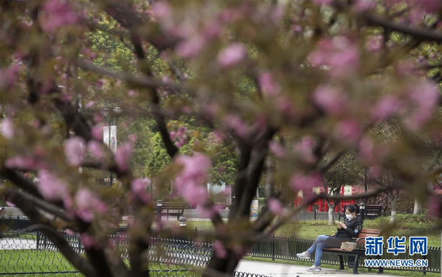 3月25日,在武漢的一個(gè)街心花園,市民在長椅上休息。新華社記者費(fèi)茂華攝