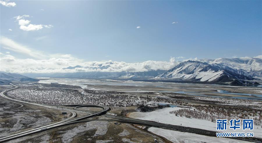 這是3月24日拍攝的雅魯藏布江雪景(無人機照片)。新華社記者晉美多吉攝