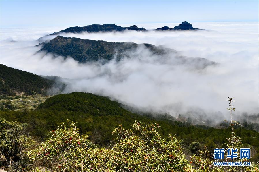 站在武夷山國家公園最高峰黃崗山遠(yuǎn)望云霧繚繞的群峰(4月1日攝)。 新華社記者 姜克紅 攝